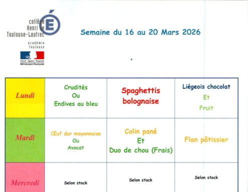Cantine : menu du 16 au 20 mars