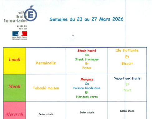 Cantine : menu du 23 au 27 mars